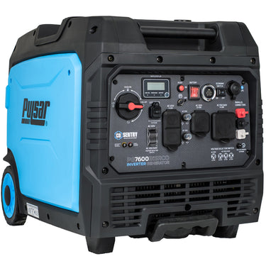 The Pulsar PG7600BiSRCO Dual Fuel Inverter Generator offers dependable, clean power for emergency backup, RV travel, mobile worksites, and outdoor events. Featuring inverter technology, it produces a stable sine wave that is safe for sensitive electronics such as laptops, medical devices, and smartphones. Its dual fuel design lets you choose between gasoline or propane, giving you flexibility during fuel shortages or extended use. The 298cc OHV engine delivers 7,600 peak watts and 6,300 running watts on gasoline, and 6,900 peak watts and 5,700 running watts on propane. Quiet operation at just 62 decibels and a 3.96-gallon fuel tank offering up to 7 hours of runtime at half load make this generator an ideal all-purpose power solution. With a compact frame, telescoping handle, and built-in wheel kit, the PG7600BiSRCO is easy to move and store. Additional features like remote start, LCD display, and parallel capability ensure it is ready to meet your power needs with confidence and control.